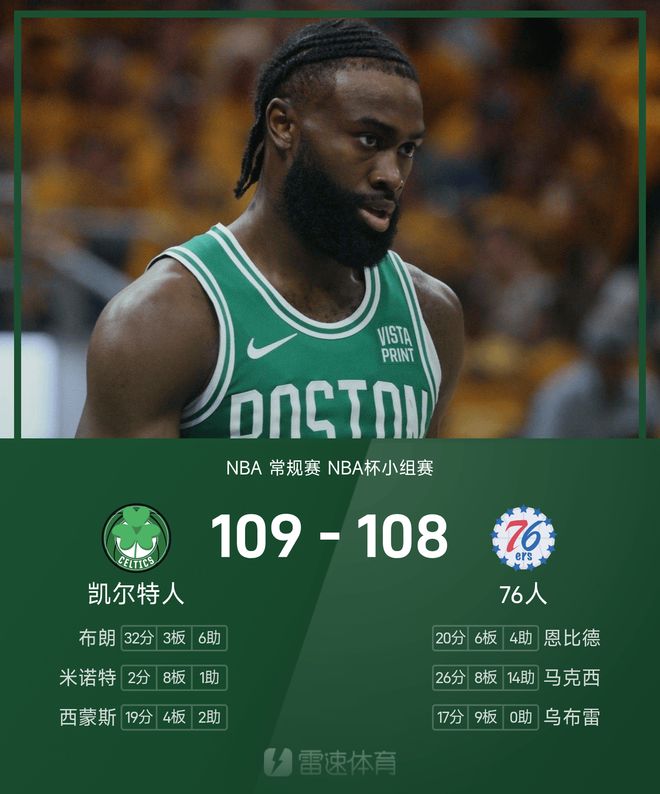 杰伦·布朗得到32分3篮板6助攻,马克西空砍26分8篮板14助攻,凯尔特人送76人赛季首败。