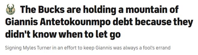 即便在最理想的情况下,特纳与字母哥的组合也不可能为雄鹿带来质变,更别提匹配这笔操作的巨大风险。但当球队被这种百年一遇的球星绑定时,往往会丧失基本判断力,这一点再怎么强调都不为过。今年夏天的雄鹿彻底失去了理智,他们不愿、也或许不敢看清眼前的现实——字母哥终将离队,而他们为留住他所欠下的巨额债务,却会永远甩不掉。