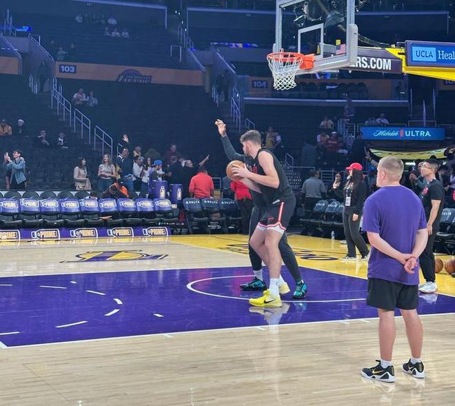 NBA生涯首次背靠背!开拓者社媒晒赛前入场照,杨瀚森出镜
