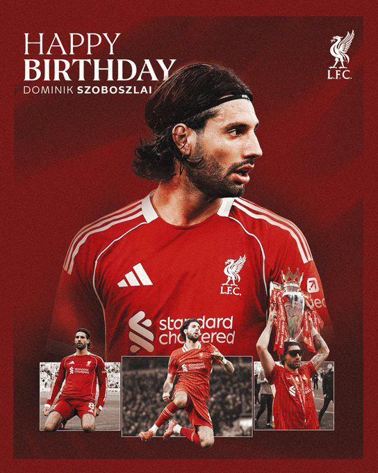 雷速体育10月25日讯 今天是利物浦中场球员索博斯洛伊的25岁生日,俱乐部官方发布定制海报,向这位匈牙利球员表示祝贺。